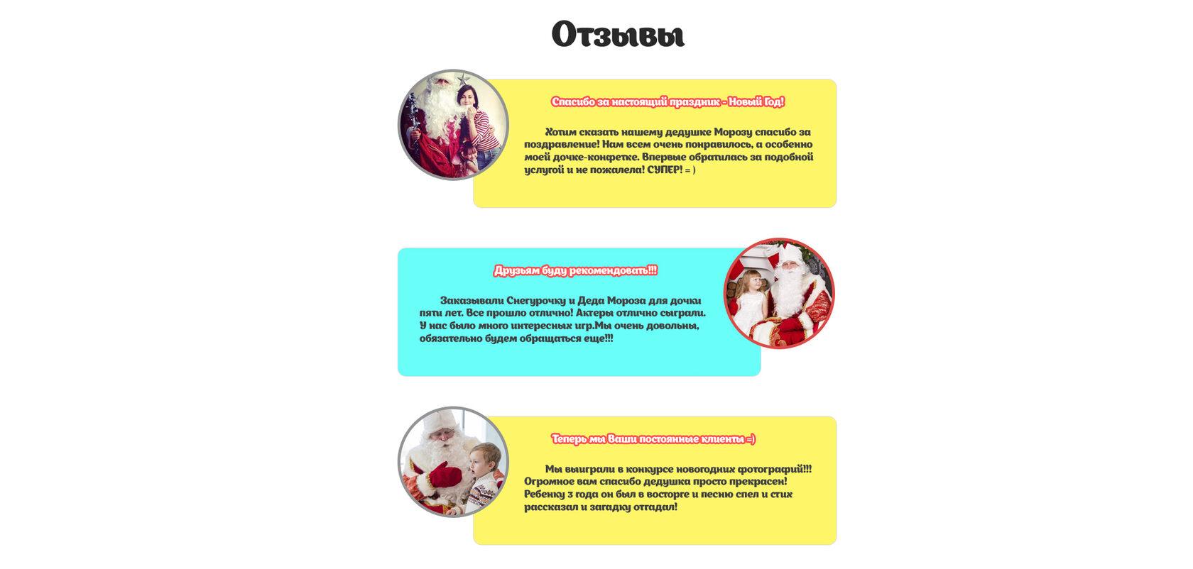Чем раньше, тем лучше: самые удобные и популярные даты разбирают первыми. Расписание наших Дедов Морозов формируется заранее, поэтому оформлять заказ лучше всего заранее. Иначе есть вероятность, что в выбранное время в конце декабря все артисты будут уже заняты.